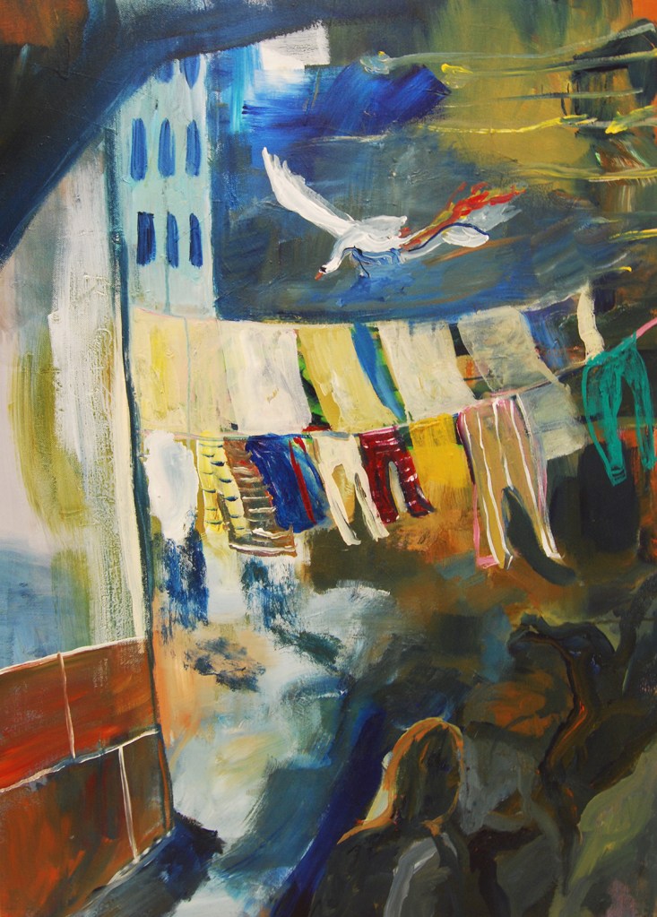 The Swans Are Flying In My Dreams (2020), acrylic paint on canvas, 75x60cm